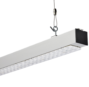 Lineare LED Lichtbandleuchte Gesamtleistung: 72W, inklusive LED-Konverter, digital dimmbar - DALI. Gehäuse aus Aluminium, eloxiert. Passives Thermomanagement. LED-Lebensdauer 50.000 h. Zulässige Umgebungstemperatur von -30°C bis +40°C. Leuchten Lichtstrom: 10.100 Lumen bei Farbwiedergabe von Ra > 80, Farbtemperatur 5000K. Präzise Lichtlenkung über geschlossenes, optisches Linsen-System, breit abstrahlend, 90°, bestehend aus 5 LED Segmenten, bestückt mit jeweils 33 LEDs, zur Reduktion der wahrgenommenen Blendung. Montage am Tragprofil durch werkzeugloses ineinanderstecken und Anschluss über selbsttätige elektrische Verbindung durch Steckkontakte mit Phasenwahl. Die Phasenwahl erfolgt werkzeuglos. Herstellung in Deutschland.