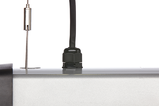 LED Hallenstrahler Gesamtleistung: 100 W, inklusive LED-Konverter. Gehäuse aus Aluminium matt, silber. Passives Thermomanagement. Abdeckung aus UV beständigem PC für anspruchsvolle Industrieanwendungen. LED-Lebensdauer 50.000 h. Umgebungstemperaturen von -30°C bis +45°C. Leuchten Lichtstrom: 10.000 Lumen bei Farbwiedergabe von Ra > 80, Farbtemperatur 5500K. Präzise Lichtlenkung über geschlossenes, optisches Linsen-System, Asymmetrisch breit abstrahlend, 60/100°. Eine umlaufende Dichtungslippe schützt vor Eindringen von Staub und Feuchtigkeit. Geschlossene Schutzart, IP65. Montage über Halteklammer oder abgehängt mit einer 2-Punkt Abhängung und vormontiertes 1,5m langes Anschlusskabel, Leitung mit freien Enden im Lieferumfang enthalten. Upgrade fähig durch Austausch von LED-Module und LED-Konverter.