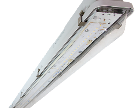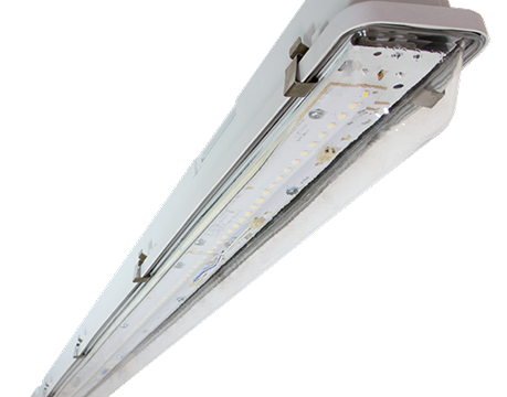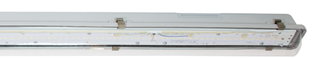 LED Feuchtraumwannenleuchte Gesamtleistung: 36 W, inklusive LED-Konverter. Gehäuse aus glasfaserverstärktem Polyester, schwer entflammbar. Abdeckung aus PMMA, schlagzäh, Chemikalienresistent und UV-resistent für anspruchsvolle Industrieanwendungen. Geschlossenes optisches System, asymmetrisch breit abstrahlend, 120°. Eine umlaufende Dichtungslippe schützt vor Eindringen von Staub und Feuchtigkeit. Geschlossene Schutzart, IP65. LED-Lebensdauer 50.000 h. Leuchten Lichtstrom: 4000 Lumen bei Farbwiedergabe von Ra > 80, Farbtemperatur 4000K. Montage über V2A Halteklammer mit variablem Verschiebebereich an Decke, Wand, Tragschiene oder abgehängt über Kette/Seil. Leuchte mit Durchgangsverdrahtung. Verschlüsse aus V2A. Entspricht den Vorgaben des Lebensmittelrechts (HACCP). Upgrade fähig durch Austausch von LED-Module und LED-Konverter.