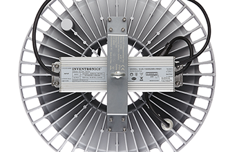 LED Hallenstrahler Gesamtleistung: 150 W, inklusive LED-Konverter. Gehäuse aus einer Magnesiumlegierung matt, grau RAL 7074. Passives Thermomanagement mittels zentrischer Lüftungsöffnung. Abdeckung aus UV beständigem PC für anspruchsvolle Industrieanwendungen. LED-Lebensdauer 50.000 h. Zulässige Umgebungstemperaturen von -30°C bis +50°C. Leuchten Lichtstrom: 19.500 Lumen bei Farbwiedergabe von Ra > 80, Farbtemperatur 5000K. Präzise Lichtlenkung über geschlossenes, optisches Linsen-System, rotationssymmetrisch breit abstrahlend, 55°. Eine umlaufende Dichtungslippe schützt vor Eindringen von Staub und Feuchtigkeit. Geschlossene Schutzart, IP65. Montage über Halteklammer oder abgehängt über eine Ringöse und vormontiertes 650mm langes Anschlusskabel, Leitung mit freien Enden im Lieferumfang enthalten.