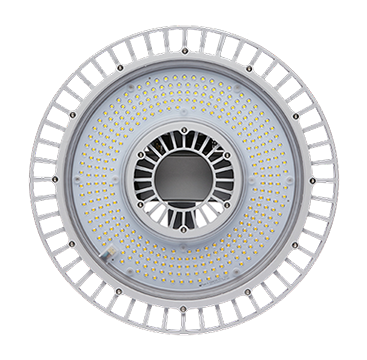 LED Hallenstrahler Gesamtleistung: 150 W, inklusive LED-Konverter, digital dimmbar - DALI. Gehäuse aus einer Magnesiumlegierung matt, grau RAL 7074. Passives Thermomanagement mittels zentrischer Lüftungsöffnung. Abdeckung aus UV beständigem PC für anspruchsvolle Industrieanwendungen. LED-Lebensdauer 50.000 h. Zulässige Umgebungstemperaturen von -30°C bis +50°C. Leuchten Lichtstrom: 19.500 Lumen bei Farbwiedergabe von Ra > 80, Farbtemperatur 5000K. Präzise Lichtlenkung über geschlossenes, optisches Linsen-System, rotationssymmetrisch breit abstrahlend, 85°. Eine umlaufende Dichtungslippe schützt vor Eindringen von Staub und Feuchtigkeit. Geschlossene Schutzart, IP65. Montage über Halteklammer oder abgehängt über eine Ringöse und vormontiertes 650mm langes Anschlusskabel, Leitung mit freien Enden im Lieferumfang enthalten.