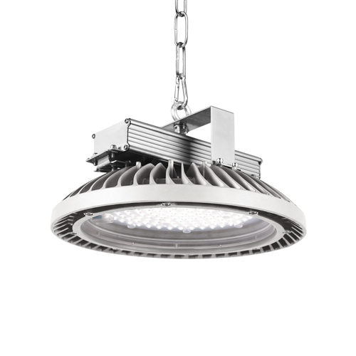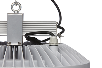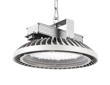 LED Hallenstrahler Gesamtleistung: 95 W, inklusive LED-Konverter. Gehäuse aus einer Magnesiumlegierung matt, grau RAL 7074. Passives Thermomanagement mittels zentrischer Lüftungsöffnung. Abdeckung aus UV beständigem PC für anspruchsvolle Industrieanwendungen. LED-Lebensdauer 50.000 h. Zulässige Umgebungstemperaturen von -30°C bis +50°C. Leuchten Lichtstrom: 12.350 Lumen bei Farbwiedergabe von Ra > 80, Farbtemperatur 5000K. Präzise Lichtlenkung über geschlossenes, optisches Linsen-System, rotationssymmetrisch breit abstrahlend, 55°. Eine umlaufende Dichtungslippe schützt vor Eindringen von Staub und Feuchtigkeit. Geschlossene Schutzart, IP65. Montage über Halteklammer oder abgehängt über eine Ringöse und vormontiertes 650mm langes Anschlusskabel, Leitung mit freien Enden im Lieferumfang enthalten.
