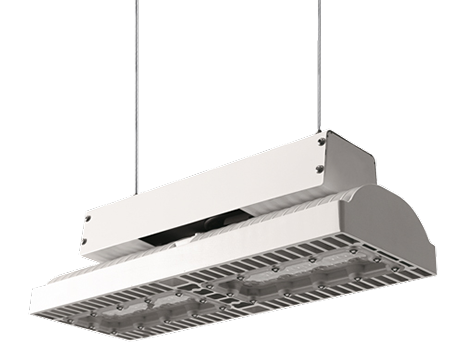 LED Hallenstrahler Gesamtleistung: 100 W, externer LED-Konverter. Gehäuse aus einer Magnesiumlegierung matt, schwarz. Passives Thermomanagement mittels seitlicher Lüftungsöffnung. Abdeckung aus UV beständigem PC für anspruchsvolle Industrieanwendungen. Spezieller HT Leuchtentyp für den Einsatz im Hochtemperaturbereich, LED-Lebensdauer 50.000 h. Zulässige Umgebungstemperaturen von -30°C bis +70°C. Leuchten Lichtstrom: 12.500 Lumen bei Farbwiedergabe von Ra > 80, Farbtemperatur 5000K. Präzise Lichtlenkung über geschlossenes, optisches Linsen-System, breit abstrahlend, 60/100°. Eine umlaufende Dichtungslippe schützt vor Eindringen von Staub und Feuchtigkeit. Geschlossene Schutzart, IP66. Montage über Bügel oder Kettenaufhängung, Leitung mit freien Enden im Lieferumfang enthalten.