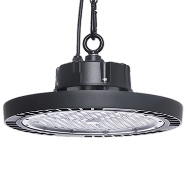 LED Hallenstrahler Gesamtleistung: 150 W, inklusive LED-Konverter. Gehäuse aus einer Magnesiumlegierung matt, schwarz. Passives Thermomanagement mittels seitlicher angeordneter Lüftungsöffnung. Abdeckung aus UV beständigem PC für anspruchsvolle Industrieanwendungen. LED-Lebensdauer 50.000 h. Zulässige Umgebungstemperaturen von -30°C bis +40°C. Leuchten Lichtstrom: 17.200 Lumen bei Farbwiedergabe von Ra > 80, Farbtemperatur 5000K. Präzise Lichtlenkung über geschlossenes, optisches Linsen-System, rotationssymmetrisch breit abstrahlend, 90°. Eine umlaufende Dichtungslippe schützt vor Eindringen von Staub und Feuchtigkeit. Geschlossene Schutzart, IP65. Montage abgehängt über eine Ringöse und vormontiertes 650mm langes Anschlusskabel, Leitung mit freien Enden im Lieferumfang enthalten.